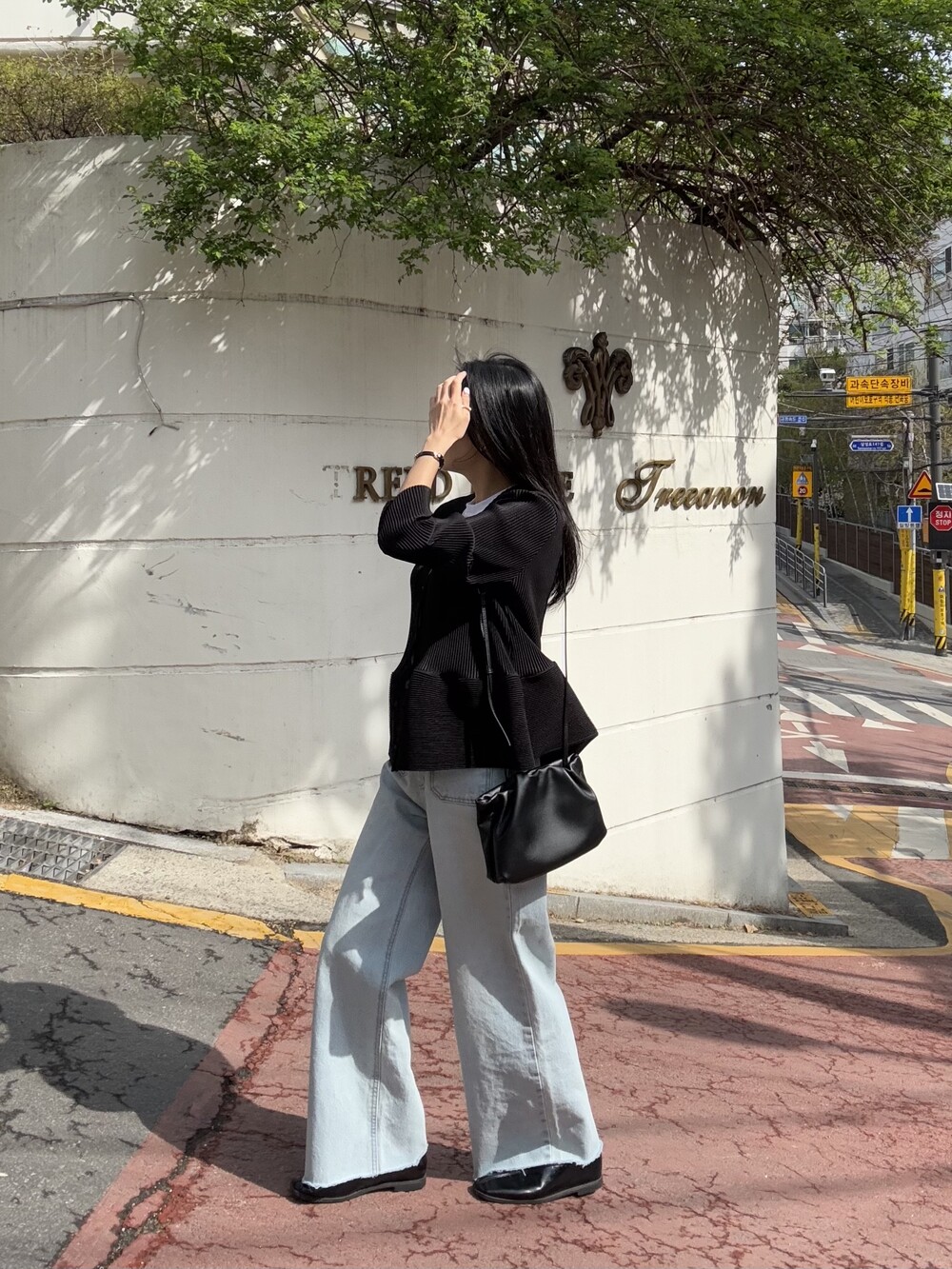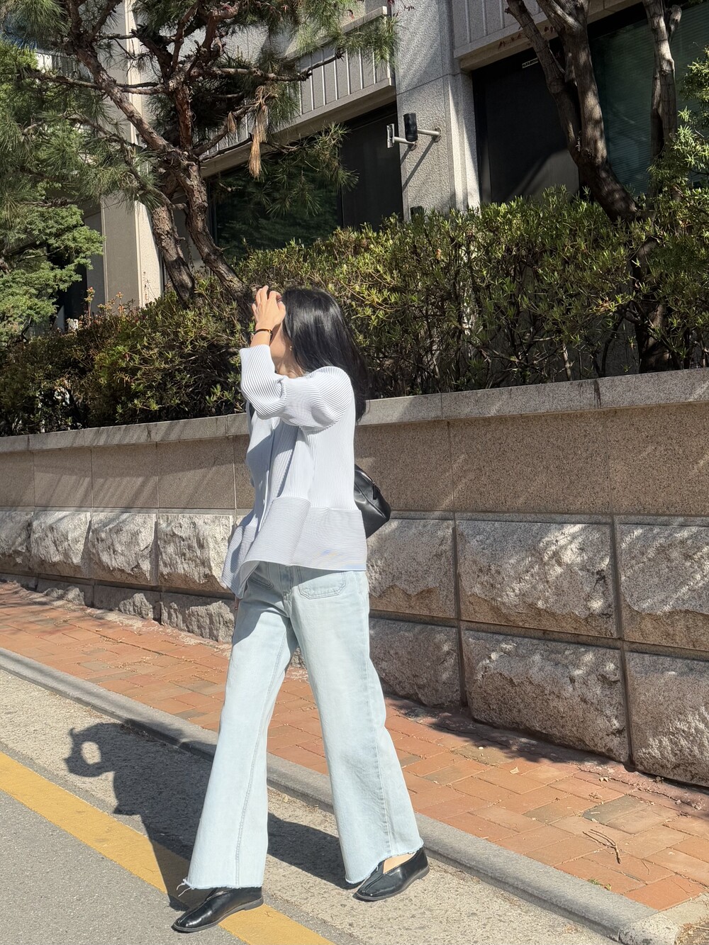 자연스럽게 살짝만 퍼지는 실루엣 선택했구요